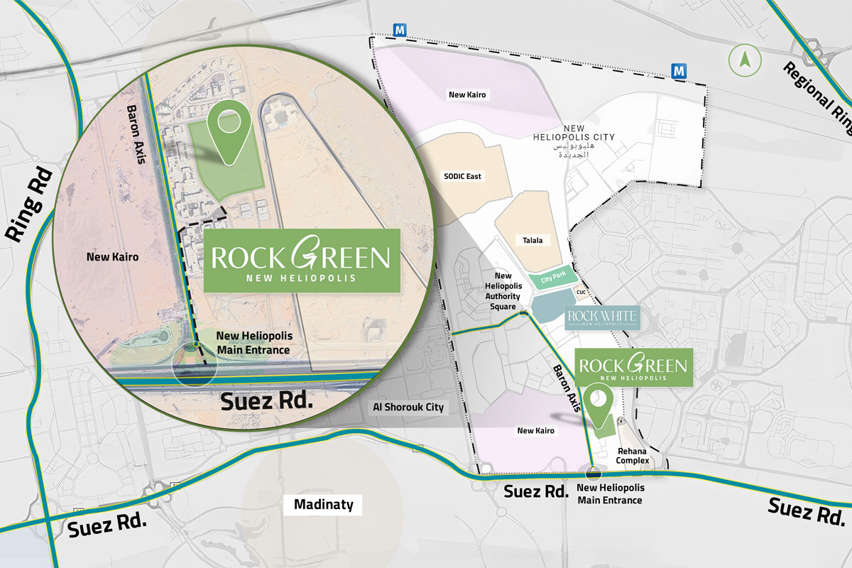 Rock Developments is now launching our new project Rock Green in New Heliopolis, 1 minute from Suez Road Following our success in Rock White, Rock Green offers a variety of luxurious apartments and private villas, designed to bring you a sense of calm and quiet, Limited number of units and priority to early birds